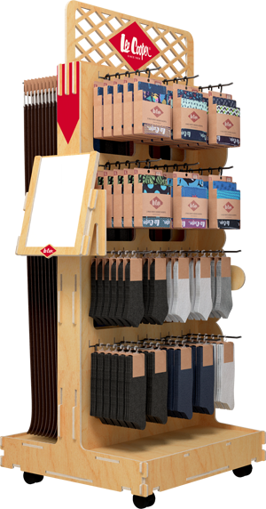 Are you interested in the project we executed for Lee Cooper? This is absolutely nosurprise to us. It is distinguishable by its graphics and constuction. In this way, we made a reference to the image of the firm which it uses on other advertising and promotional mediums.Now you can understand why this client chose our firm as theexecutor of the advertising display for its products, in order to emphasize their sense ofattachment to the ecological philosophy of their business.