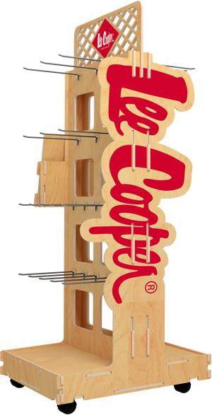 Zainteresował Cię projekt wykonany przez nas dla polskiej firmy Lee Coper? Zupełnie nas to nie dziwi. Wyróżnia się chociażby konstrukcją, która umożliwiła stworzenie wielu półek i przegródek do prezentacji produktów naszego klienta. W ten sposób spełniliśmy oczekiwania firmy Lee Coper który chciał umieścić cały asortyment na jednym stojaku. Teraz rozumiesz, dlaczego Klient wybrał nas na wykonawców ekspozytora reklamowego dla swoich produktów, jesteśmy w stanie wykonać nawet najbardziej wymagający i skomplikowany projekt. Szczegóły: Display reklamowy został wykonany z certyfikowanej sklejki brzozowej. Składa się z kilku pojemnych półek i liku dziesięciu przegródek.